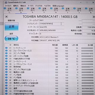 で、10TBのIronWolfはNASのRAIDに4台目のディスクとして移し、フリマで中古の東芝の14TBを2台買いました。最近フリマではSMARTの情報を改ざんした実際の稼働時間が3万時間オーバーみたいなのが大量にあるみたいなので、WDもSeagateも稼働時間が短いのにRMA期限切れとか怖いんですよね。