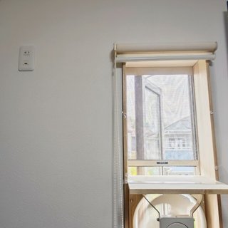 エアコンが付くまでのつなぎに、有圧換気扇を窓に取り付けましたが、家庭用の換気扇とは段違いの排気性能ではあるものの快適には程遠く、雨の日は窓を開けられないので限られたソリューションでしかありません。40dB未満とはいえまぁまぁ大きな音もするし、むき出しなので怪我の危険性も無いわけではありません。