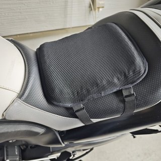 あまり幅が広くても足つき性への影響が増すので、このくらいの幅で収まっているくらいがいいのかも。座り心地はよくあるゲルクッションです。これで痛みが軽減されればいいですが。